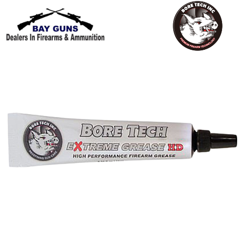 Bore Tech’s Extreme Grease HD is an ultra tacky triple based synthetic blend formulated specifically for superior firearm operation. The high performance extreme pressure additives, enhanced rust inhibitors, and nano-ceramic temperature lubricants provide a wide operational temperature range of -85°F to +700°F and eliminate the “gumming” and “running” found in other brands The proprietary formulation has a much lower coefficient of friction than molydisulfide, flouropolymers, lithium and graphite based greases and penetrates into metallic and polymer surfaces providing unsurpassed and extended lubrication to over 2000°F. Bore Tech’s Extreme Grease HD is the only premium grease formulated specifically for use on firearm locking lugs, frame rails, hinge pins and camming mechanisms where smooth operation, extended part life and performance under extreme conditions is required.