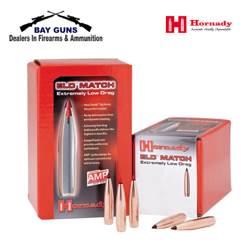 ELD® Match (Extremely Low Drag Match) bullets are technologically advanced, enhanced accuracy target bullets featuring Heat Shield® tips with the PERFECT MEPLAT (tip point) combined with numerous design features that deliver the highest-in-class ballistic coefficients, superior accuracy and extreme consistency from bullet to bullet, lot to lot.
