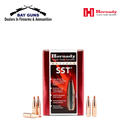 Projectile 8mm (323) 170Gr Hornady SST 100’s Item #3233 | 100/Box US Patent: 8,161,885 | 8,413,587 The Hornady® SST® (Super Shock Tip) is designed to deliver tremendous shock on impact while expanding quickly and reliably, particularly at higher velocities. Flat shooting and deadly accurate, it’s an ideal bullet for whitetails, as well as most North American game animals from antelope to moose and similar-sized African plains game. The SST® creates a devastatingly large wound channel.