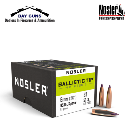 Delivering the accuracy, consistency and down range punch required for clean kills in all situations, Nosler’s Ballistic Tip® hunting bullet maximizes energy transfer for devastating performance. The aerodynamic polymer tip (color coded by caliber) initiates rapid and uniform expansion of the bullet upon impact while the fully-tapered jacket provides maximum energy transfer and optimum weight retention at all practical velocities. Equipped with a heavily jacketed base that acts as a platform for large-diameter mushrooms and a boat-tail design that enhances long-range accuracy, the Ballistic Tip® is a favorable design for reloaders targeting deer-sized game.