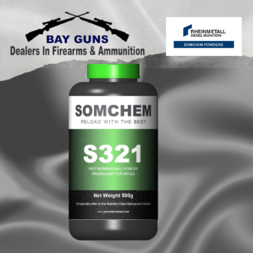 Somchem S321 is a fast-burning spherical (ball) rifle propellant designed for consistent ignition and stable pressures. Manufactured in South Africa, it is highly suitable for smaller calibres and applications where quick, efficient energy release is required. Reloaders value it for its clean burn and dependable ballistic performance.